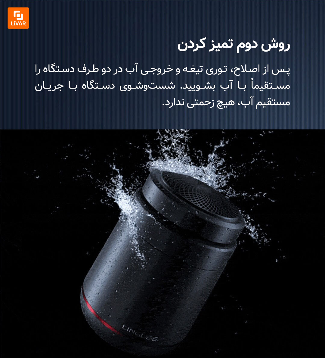 با وجود ضدآب بودن ریشتراش مینی LINGLEE میتوانید آن را بعد از استفاده، با آب بشویید. این ویژگی به شما اطمینان میدهد که میتوانید ریشتراش را به راحتی تمیز و بهداشتی نگه دارید و نیازی به استفاده از فرچه و یا مسواک برای جدا کردن موها از تیغهها ندارید.