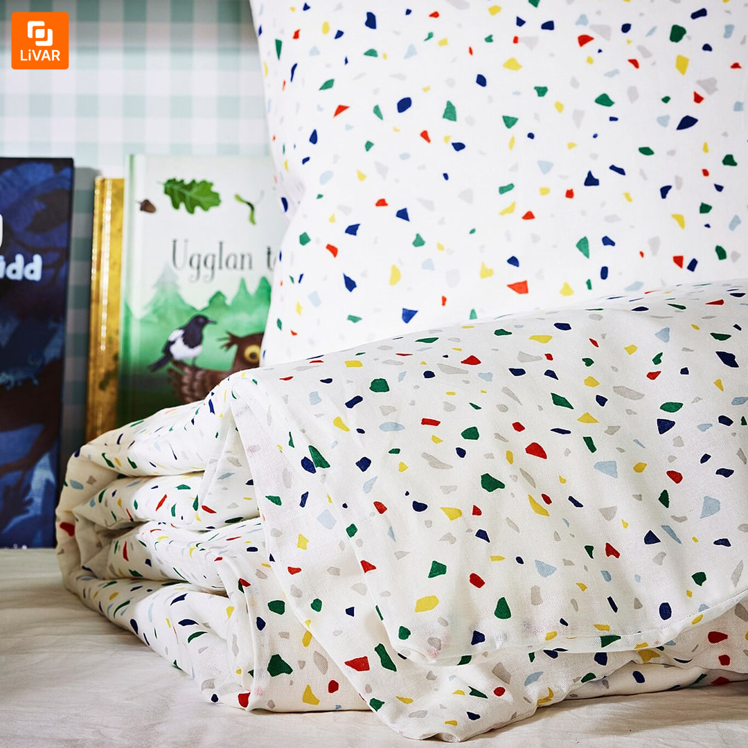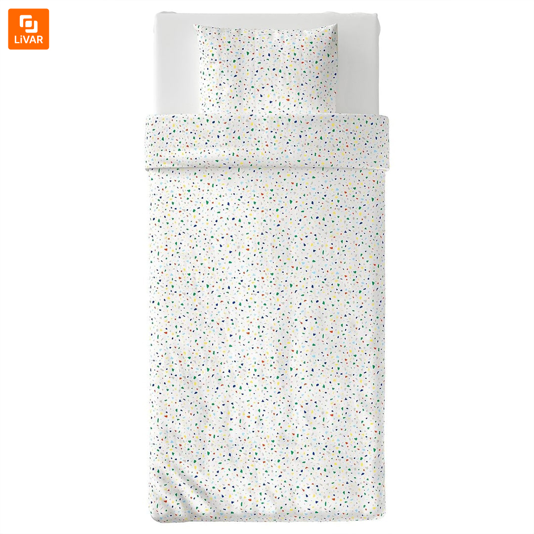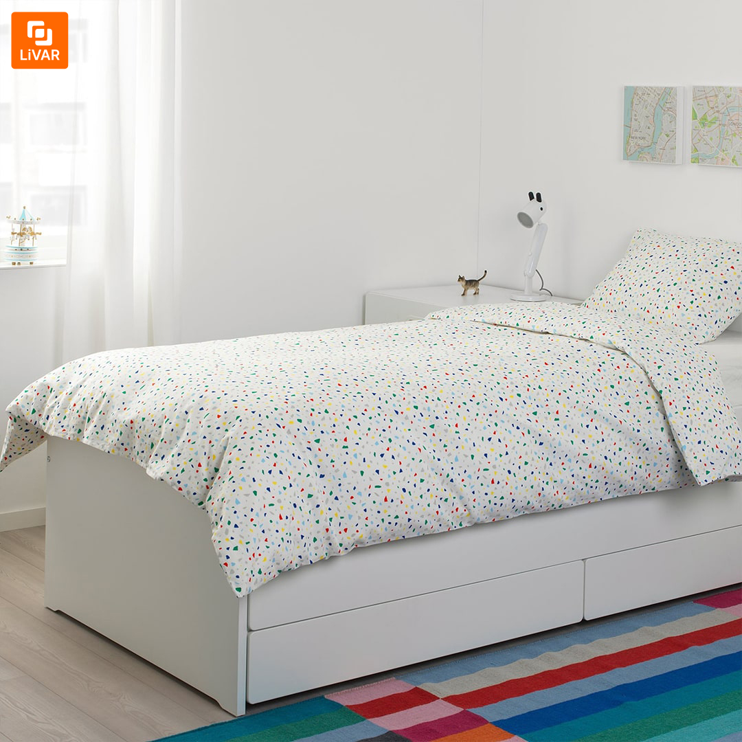 سرویس کاور روتختی IKEA مدل MOJLIGHET یک مدل دیگر از سرویس‌های کاور روتختی برند ایکیا با طرح موزاییک می‌باشد. اشکال رنگی به‌کاررفته در طرح پارچه، قبل از خواب به انسان حس نشاط می‌بخشند. روکش لحاف و روبالشی، لطافت و نرمی خاصی دارند و برای پوست‌های حساس مناسب‌اند. سرویس کاور روتختی IKEA مدل MOJLIGHET با طرح زیبا و کیفیت مناسب برای دوستداران ایکیا و نیازمندان به این محصول، عرضه شده است.